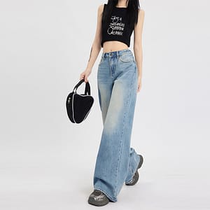 Color: retro blue trousers, retro blue lengthened